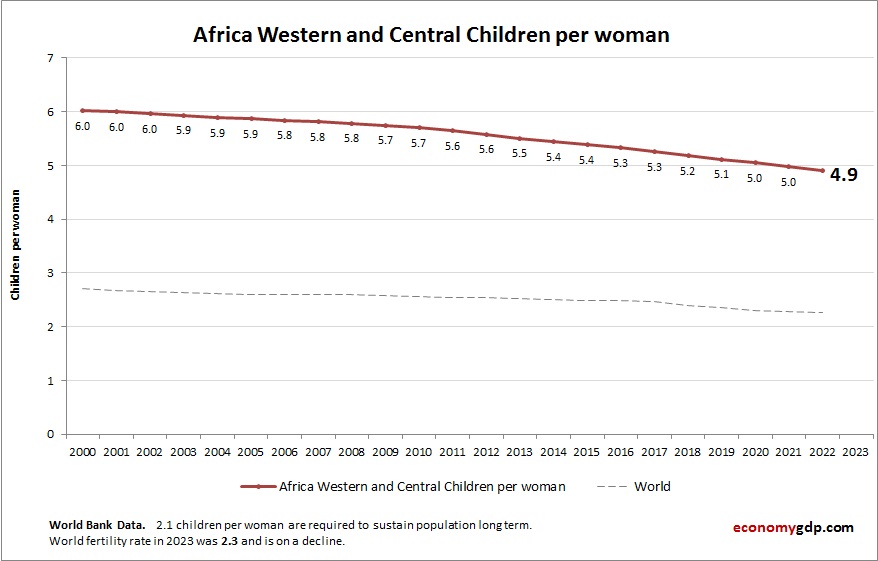 Africa Western and Central Children Per woman