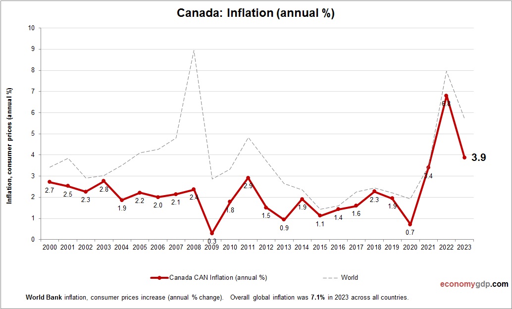 The Canada’s inflation is moderate at 2.3%, driven by housing shortages and energy costs. Strong resource exports and U.S. trade ties add pressure, while tight monetary policy curbs price growth. High living costs and labor market strength sustain inflation, but supply chain improvements and stable commodity prices help. Investments in clean energy moderate energy-driven inflation, keeping it manageable.