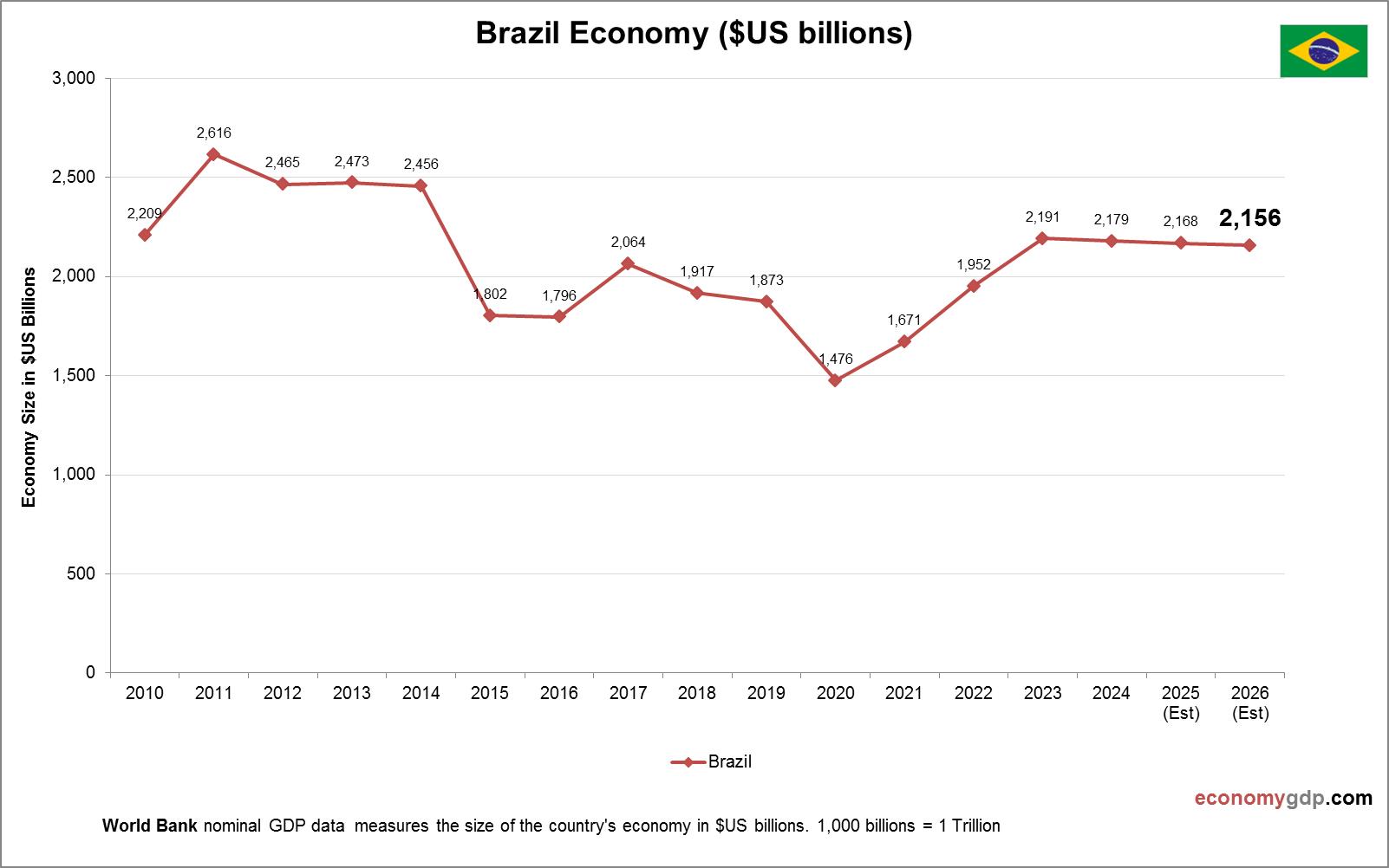 This chart demonstrates Brazil GDP per capita. This is according to World Bank GDP stats by country. Based on the latest available information for Brazil. Brazil, as the largest economy in Latin America, has a moderate GDP per capita. The View diagram Brazil GDP per capita