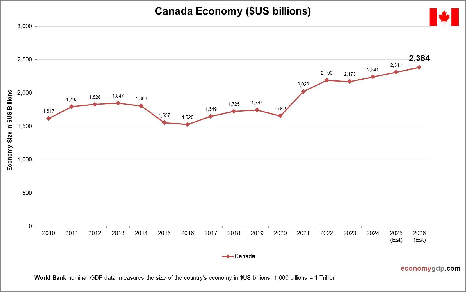 This diagram presents Canada GDP per capita. The economic data is provided by World Bank. Latest GDP per person information for Canada. Canada maintains a high GDP per capita, supported by a resource-rich economy and a strong services sector. It View diagram Canada GDP per capita