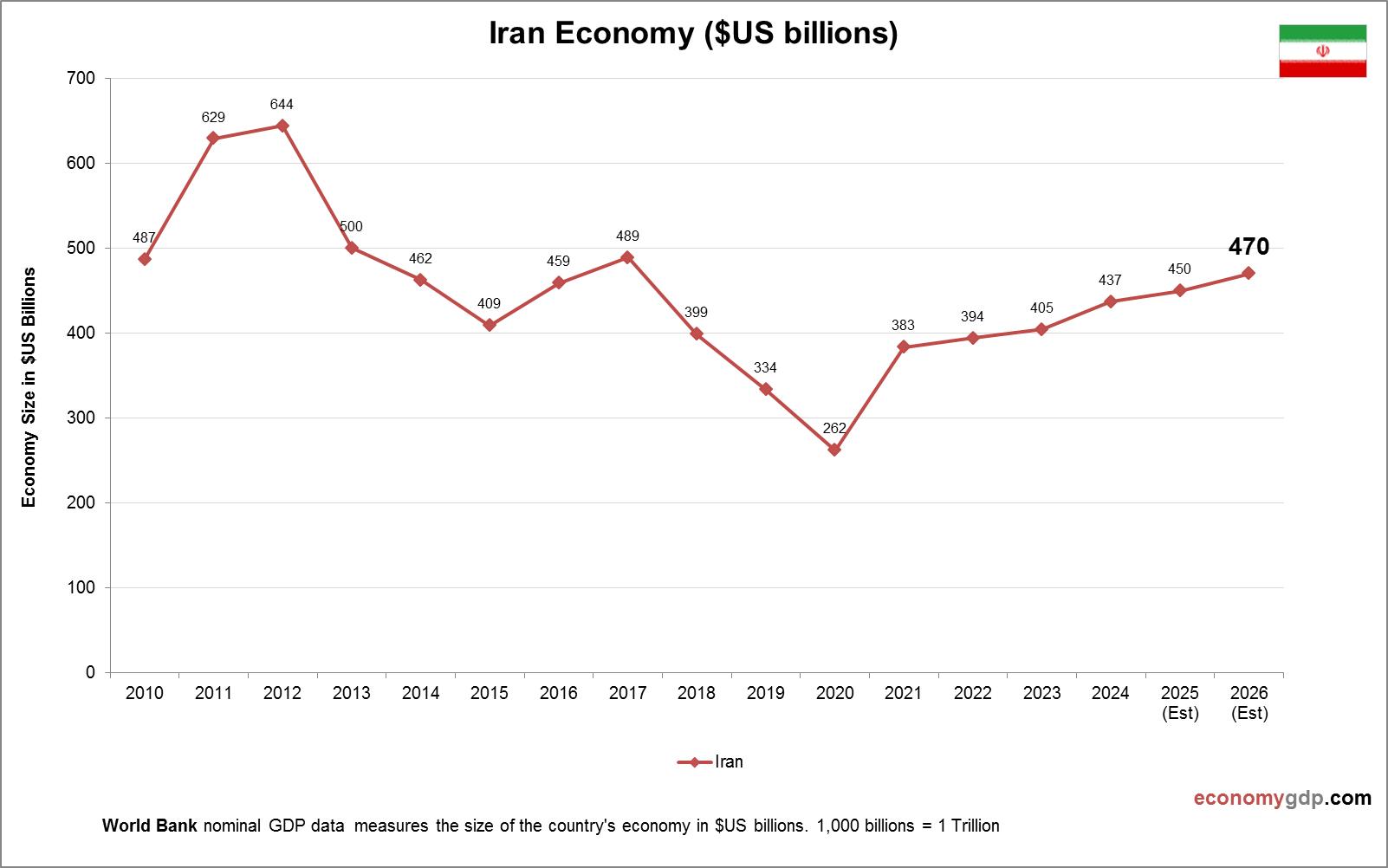 The Iran economy is heavily oil-dependent, with petroleum driving exports. Agriculture, including pistachios and saffron, and manufacturing also contribute. Sanctions have constrained growth, causing inflation and unemployment spikes. A large domestic market and skilled workforce offer potential, but political isolation View diagram Iran Economy in Graphs