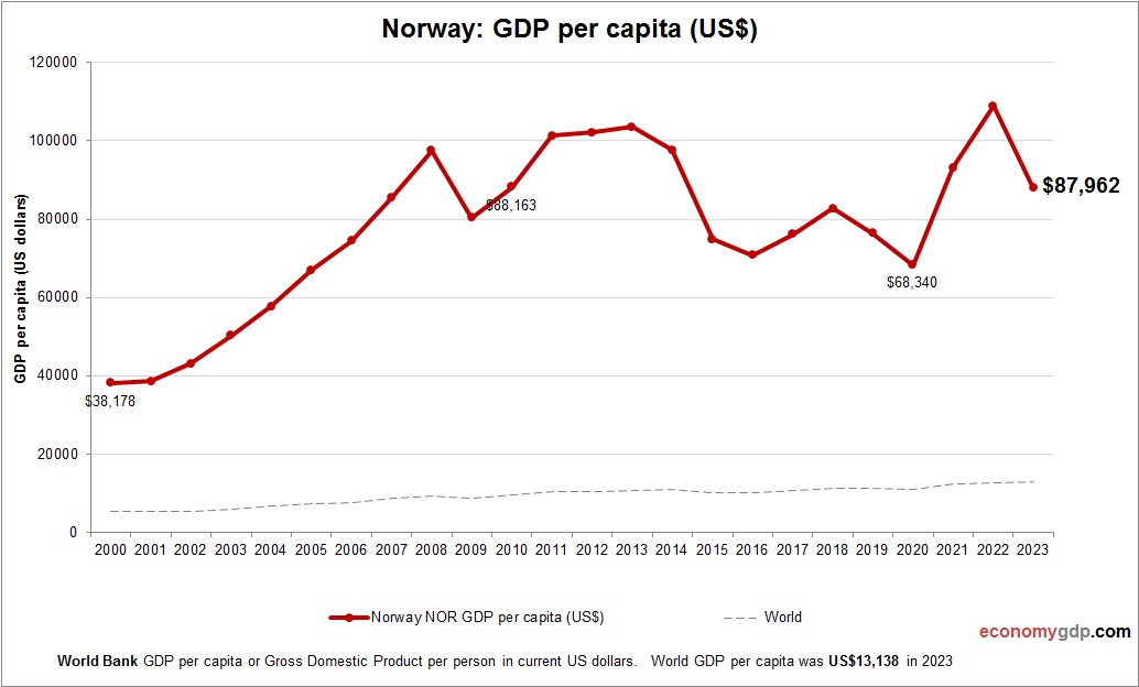 Norway’s economy is dominated by oil, gas, and fisheries. It’s a global leader in petroleum exports, with Equinor driving production. Fisheries, particularly salmon, are a key export. Services, including shipping, also contribute. Emerging industries include renewable energy, with offshore wind View diagram Norway Economy in Graphs